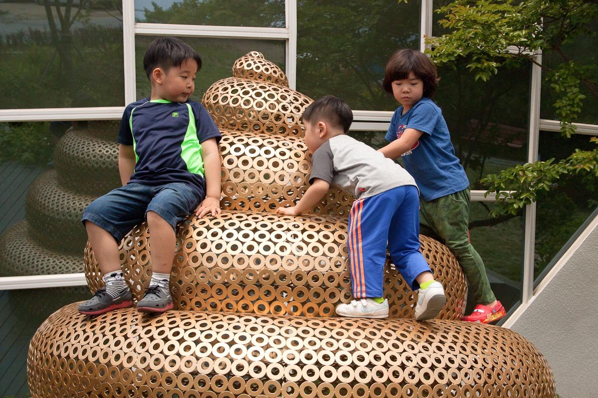 Children climbing a giant golden poo is a perfectly normal thing to see in South Korea